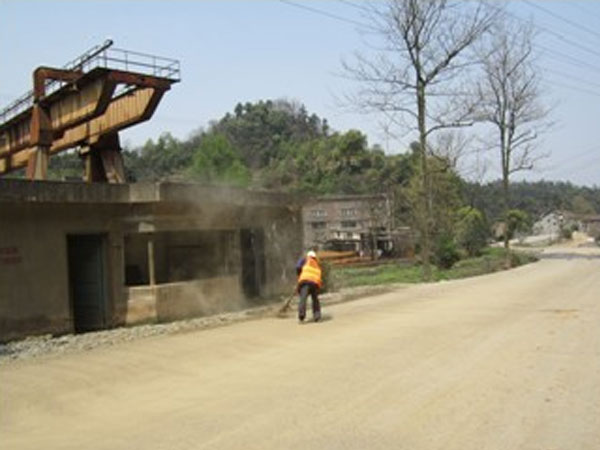 迪邦保潔公司保潔人員正在為“良山特鋼產業園區”做公路保潔。